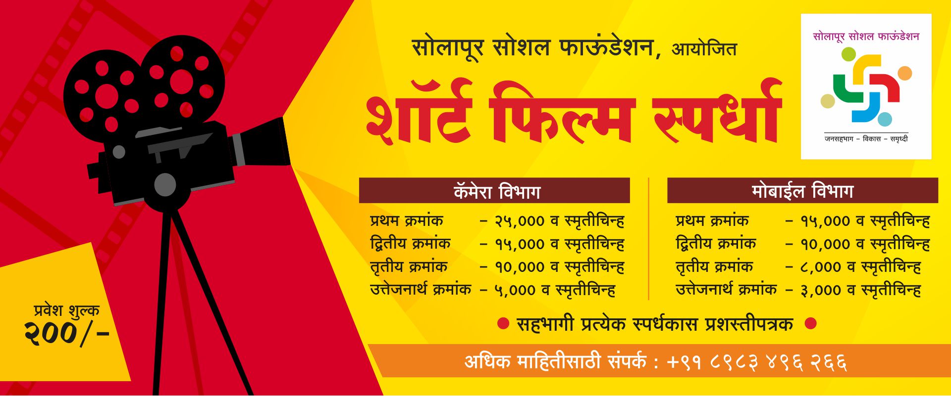 सोलापूर जिल्हा व शहराचे देशपातळीवर ब्रॅंडिंग व्हावे व त्यायोगे प्रगति साधली जावी यासाठी सोलापूर सोशल फाऊंडेशन नेहेमीच प्रयत्नशील राहिले आहे. जनतेचाही या कार्यात सहभाग व्हावा व अधिकाधिक सोलापूरकरांनी फाऊंडेशनसह जोडले जावे यासाठी विविध उपक्रम, कार्यक्रम, स्पर्धा घेतल्या जात असतात. या विधायक उपक्रमात तरुण पिढीनेही सहभागी व्हावे यासाठी शॉर्टफिल्म स्पर्धा आयोजित करण्यात आली आहे. मोबाईल तसेच कॅमेरा या दोन्ही माध्यमांद्वारे स्पर्धकांना शॉर्टफिल्म तयार करता येईल. मोबाईलमध्ये ३ मिनिटे तर कॅमेरामध्ये ६ मिनिटांची शॉर्टफिल्म स्पर्धकांनी बनवायची आहे.