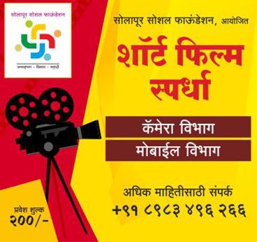 सोलापूर जिल्हा व शहराचे देशपातळीवर ब्रॅंडिंग व्हावे व त्यायोगे प्रगती साधली जावी यासाठी सोलापूर सोशल फाऊंडेशनतर्फे आयोजित केल्या जाणार्या उपक्रमांपैकी एक म्हणजे 'शॉर्टफिल्म स्पर्धा'. या स्पर्धेमध्ये मोबाईल अथवा कॅमेरा या माध्यमांद्वारे स्पर्धकांना शॉर्टफिल्म बनवायची होती. २६ फेब्रुवारी ही या स्पर्धेत सहभागी होण्याची अंतिम तारीख होती. या स्पर्धेचा निकाल लवकरच जाहीर करण्यात येईल.